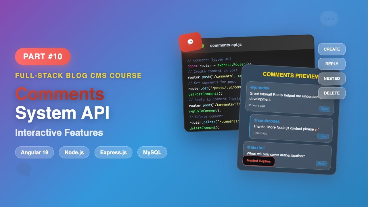 Comments System API Development in Node.js and ExpressIn this comprehensive tutorial, we dive deep into developing a robust comments system API using Node.js and Express. The lecture covers the comple...