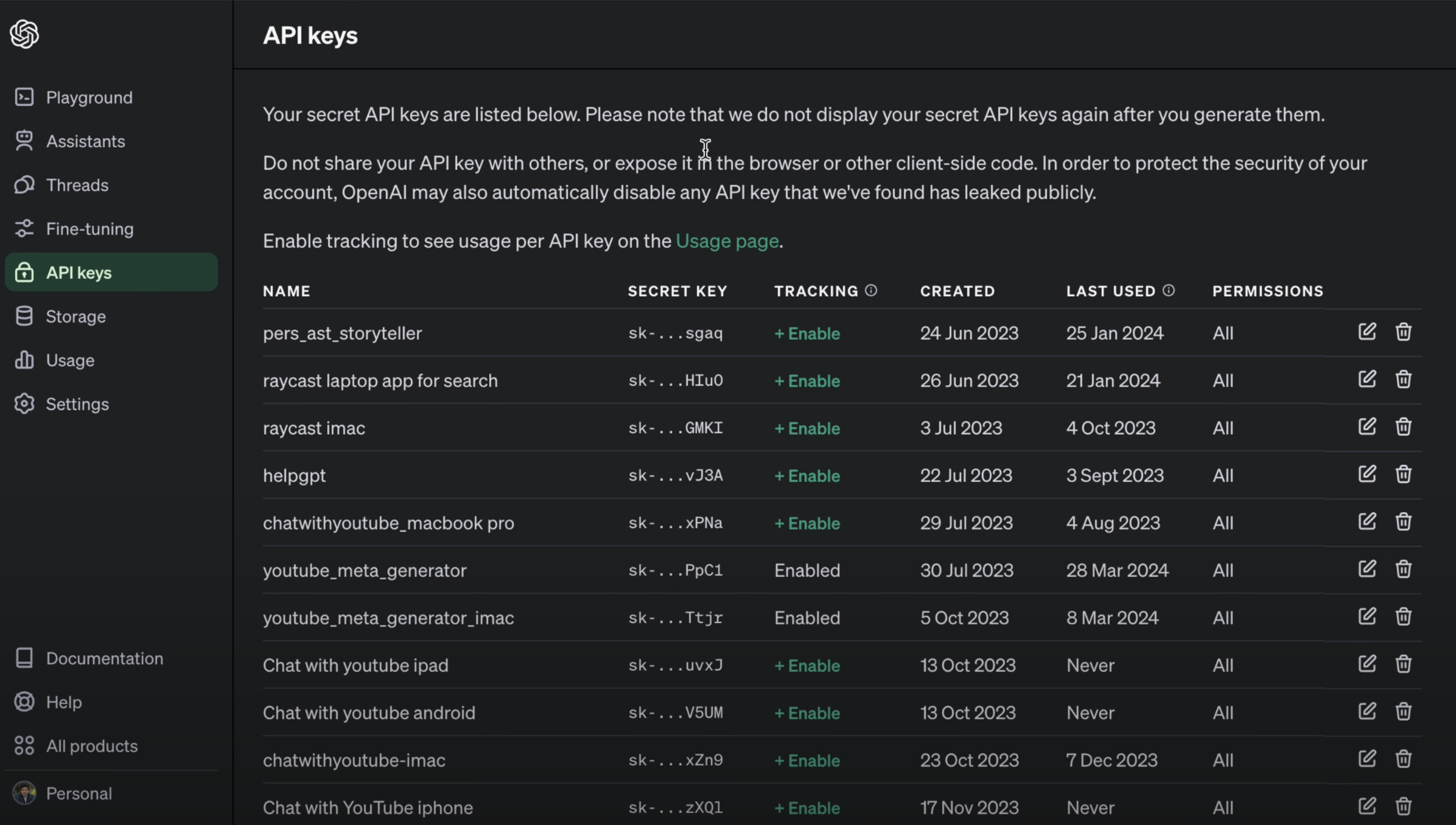 - In the OpenAI dashboard, navigate to the API Keys section.