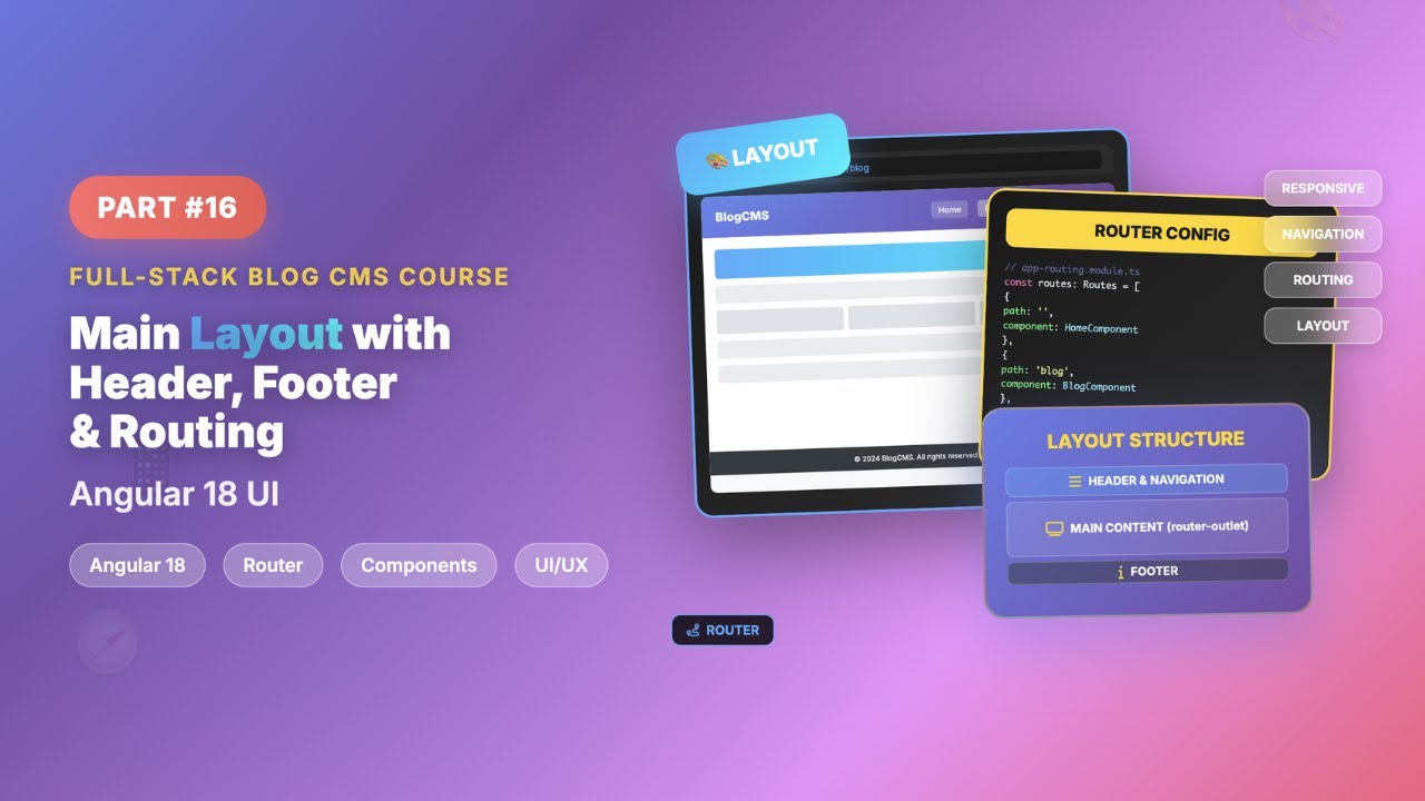 In this comprehensive tutorial, we dive deep into creating a robust and professional user interface for an Angular 18 application. The video walks you through setting up a modular project structure, implementing efficient routing, and designing responsive components using Tailwind CSS.