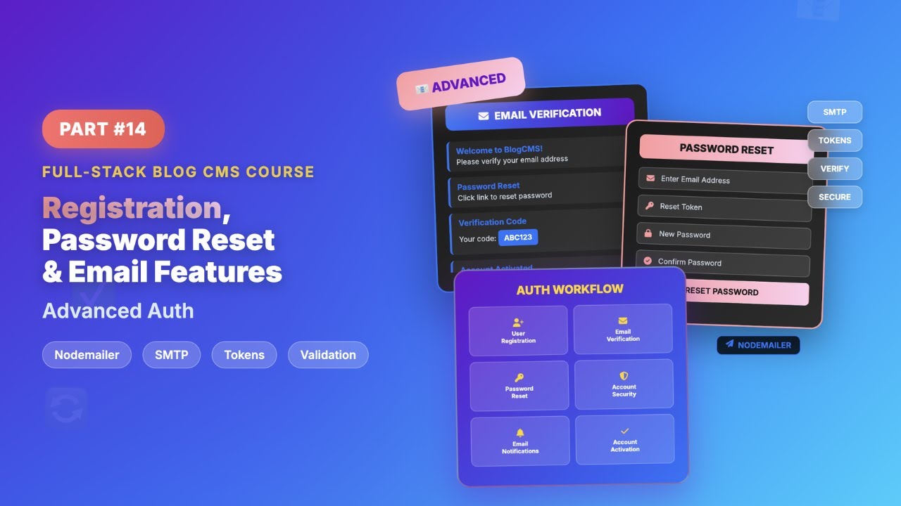 In this comprehensive tutorial, we dive deep into implementing advanced authentication features for a full-stack application using Node.js and Angular. The video covers critical aspects of user management, including secure registration, email verification, and password reset functionality.